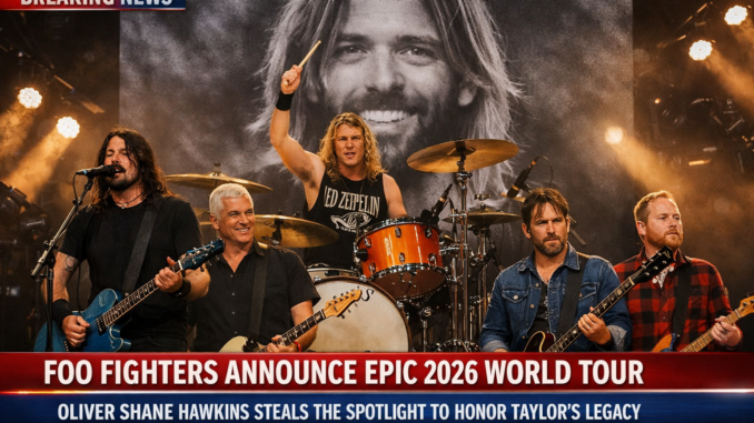 In a stunning announcement that has sent shockwaves through the music world, legendary rock band Foo Fighters have revealed their highly anticipated 2026 world tour. The tour promises to be a monumental event, marking a new chapter in the band’s storied history and celebrating the enduring legacy of their late drummer, Taylor Hawkins. What makes this tour even more extraordinary is the emergence of Taylor’s son, Oliver Shane Hawkins, stepping into the spotlight to honor his father’s memory with an electrifying presence and raw talent that has fans and critics alike speechless.